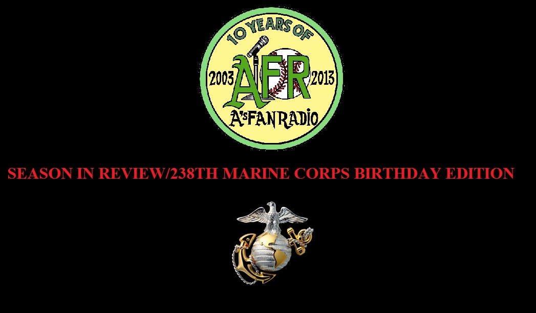 For those of you who missed tonight’s look back at the A’s 2013 season and celebration of the Marine Corps turning 238, here is the recording of the show: